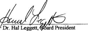 Dr. Hal Leggett told the board that he encourage the board members who will not serve next year, to resign so the new board could be seated as soon as possible, since the board has so many decisions to make. Board Attorney Lonny Myles told