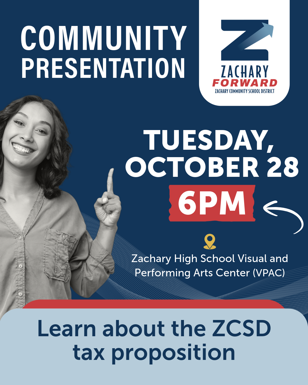 Please click the link for a video message from the Superintendent, detailed information, and FAQs about the Zachary Forward initiative. Please reach out to us with any questions you have.