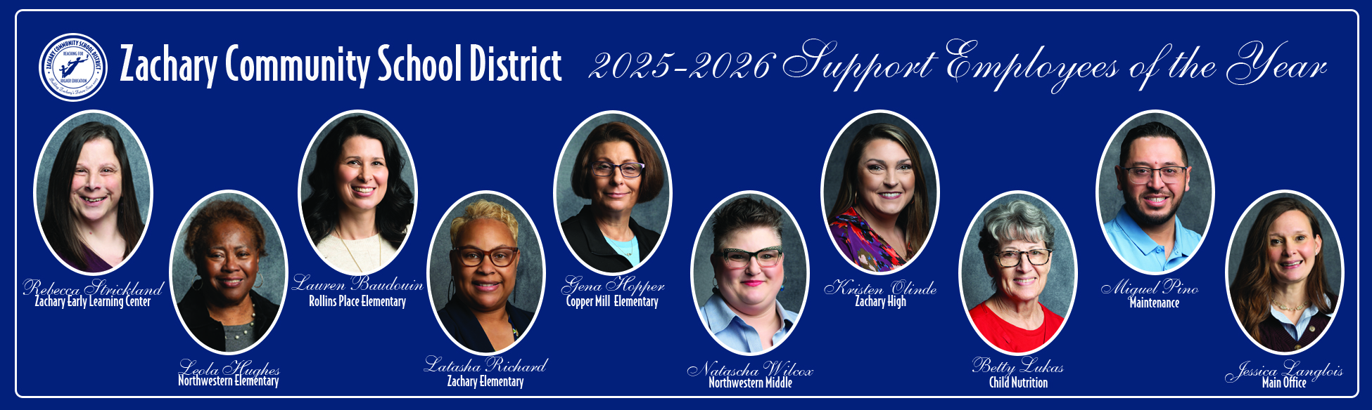 The ZCSD is excited to spotlight its Employees of the Year! They were selected by their schools and departments for the amazing work that they do each day! The ZCSD truly has some of the most talented, caring employees who each play a different role daily in keeping our staff and students safe, well-cared for, and educated in the most innovative and effective ways possible! Thank you for all that you do for our students, their families, and our commun#WeAreZacharyc#AcademicsArtsAthleticse#ZacharyForwardr#Employeesoftheyeare#amazingemployeeso#shapingmindsandheartsearts