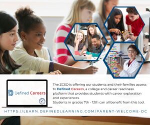 The ZCSD is still offering our students and their families access to Defined Careers, a college and career readiness platform that provides students with career exploration and experiences. Students in grades 7th-12th can all benefit from this tool.