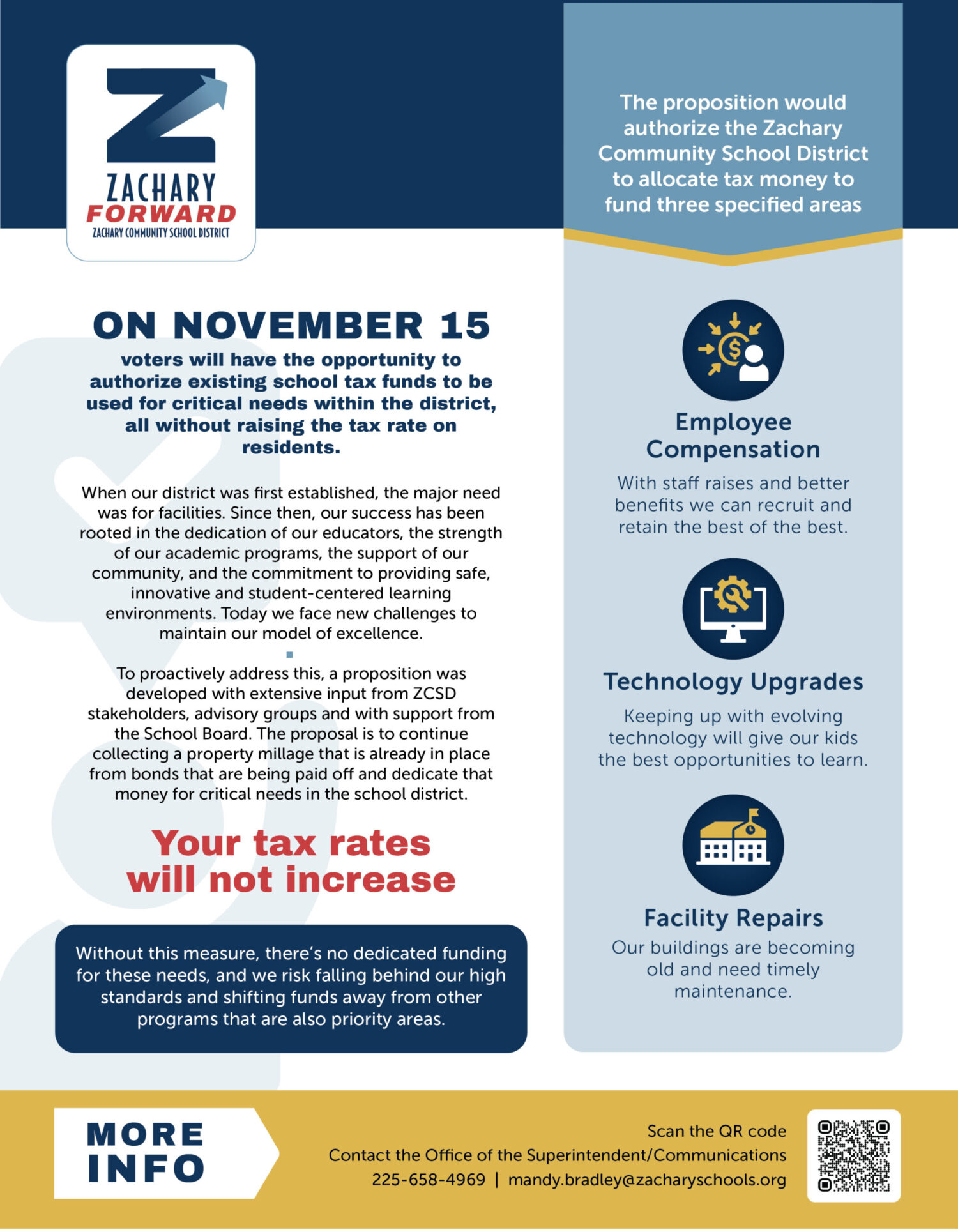 If you have any questions, contact the Office of the Superintendent/Communications (225-658-4969 or mandy.bradley@zacharyschools.org).
