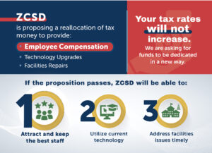 - Employee Compensation: enabling more competitive salaries and benefits to recruit and retain quality educators (neighboring districts have implemented raises, and ZCSD aims to be more competitive).
